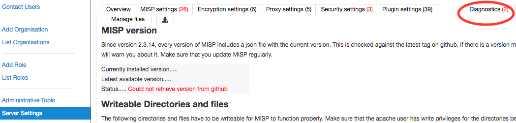 Server Settings: Set up and diagnose your MISP installation.